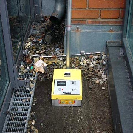 Messung eines undichten Flachdaches um zu klären, welche Bereiche des Daches durchfeuchtet sind.